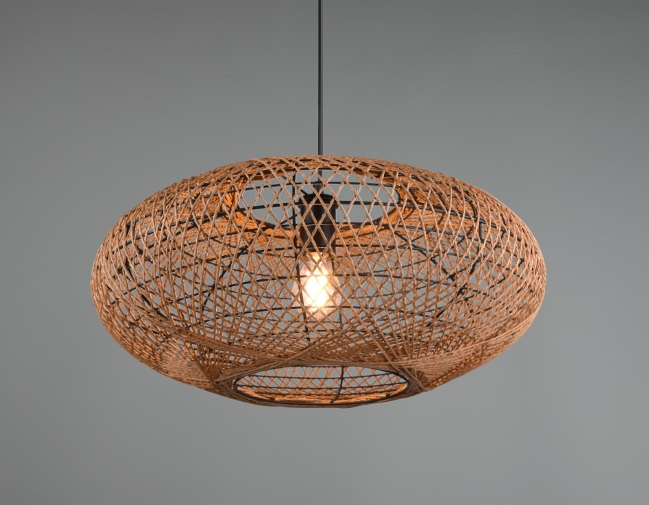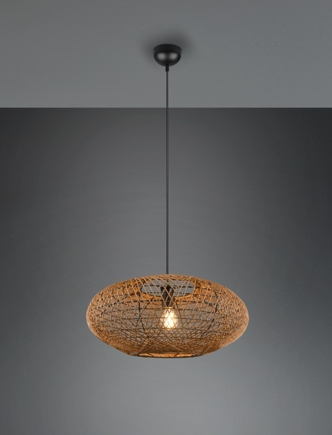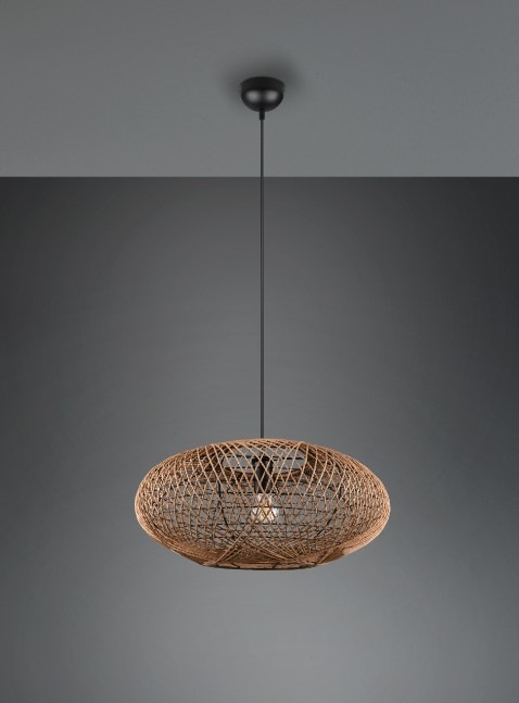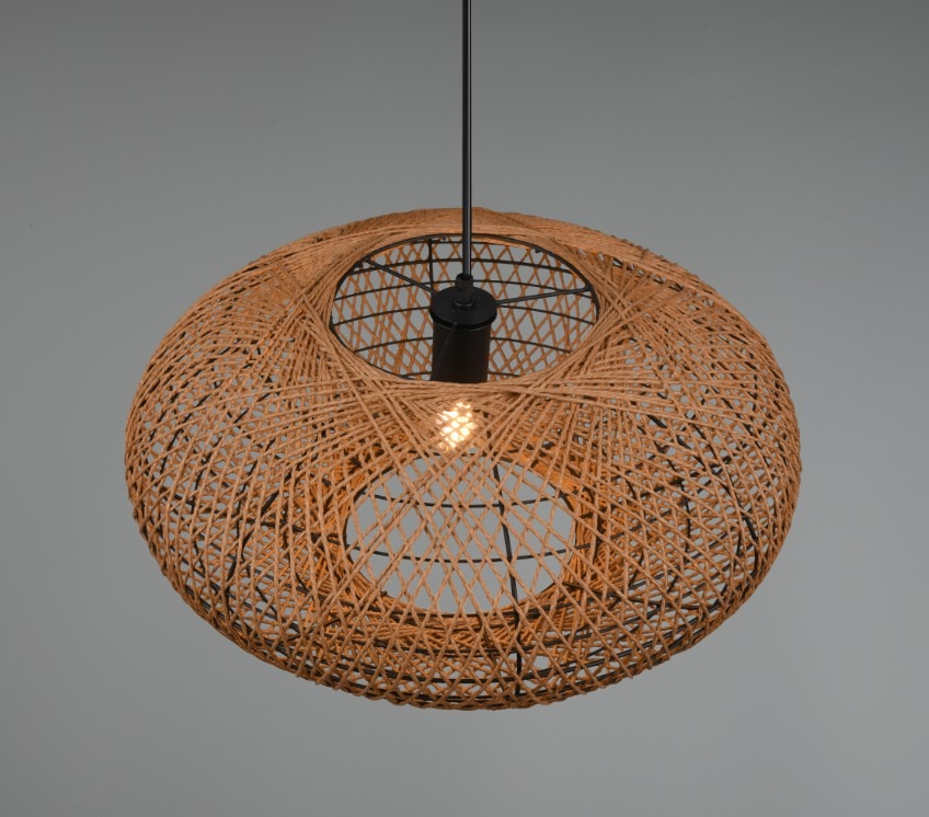 Een opvallende hanglamp met een landelijke natuur look uit de collectie van Trio. Deze hanglamp is gemaakt van metaal en sisal in een mat zwarte kleur met een natuurlijke bruinkleurige afwerking. De lamp wordt exclusief lichtbron geleverd en is geschikt voor max. 1x 40W met E27 fitting. Deze lamp kan goed worden geplaatst in de eetkamer boven een mooie eettafel of elders in de woonkamer. De lamp is een echte blikvanger in het interieur.