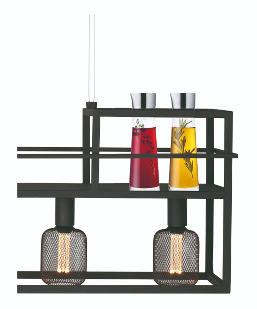 Een hanglamp alleen gebruiken voor het licht is verleden tijd met deze Culinara hanglamp van Freelight. Op de foto is de lamp te zien met 5 lichtpunten met prachtige lampenbollen met gaas erop. Deze worden niet standaard meegeleverd maar kunt u los bijbestellen door te zoeken op artikelcode LM403Z. Standaard wordt de lamp dus geleverd zonder lichtbronnen en kunt u dus helemaal zelf de gewenste lichtbron erbij kiezen. Bovenop de lamp is dus ruimte om wat spullen op kwijt te kunnen, denk hierbij aan een plantje, zout/peperstel of iets anders. Je kan het zo gek nog niet bedenken. Hierdoor geef je de lamp net een beetje extra.