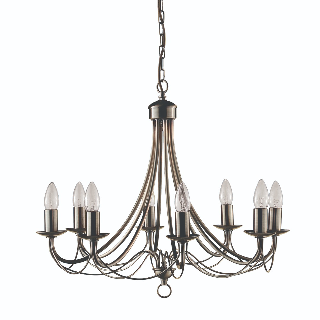 Een klassieke hanglamp uit de Maypole collectie van het merk Searchlight met een kroonluchter uitstraling. De prachtige messing lamp komt goed tot zijn recht boven een eettafel of in een ruime hal. Toepasselijk in verschillende interieurstijlen zoals modern of klassiek. De lamp is exclusief en is geschikt voor 8 lichtbronnen met E14 fitting en max. 60 watt per stuk. Mooi om kaarsvormige lichtbronnen te gebruiken voor het echte kroonluchter effect. De Maypole is bij montage in hoogte te vestellen naar wens.