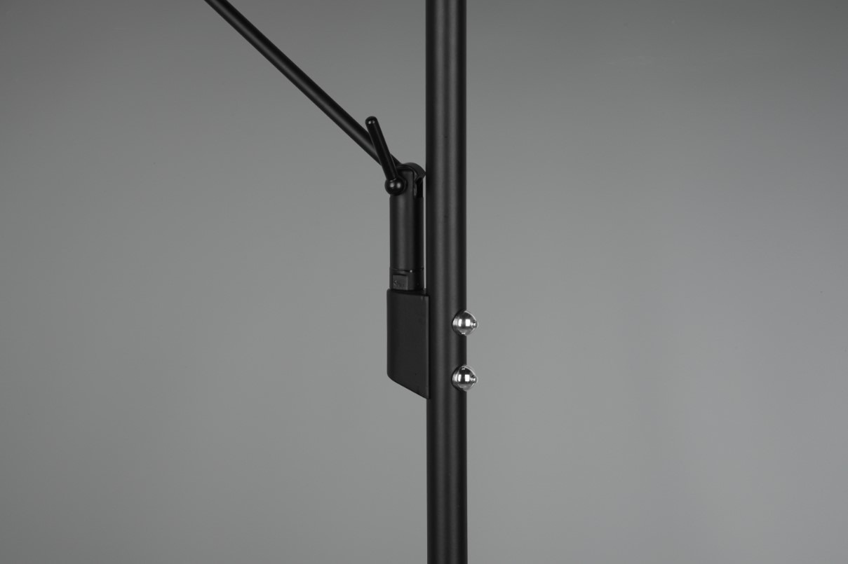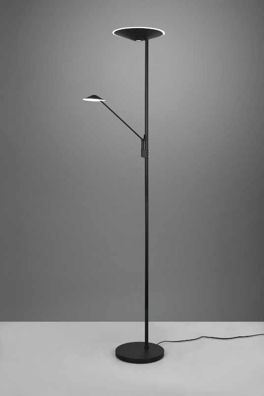 Een moderne vloerlamp met praktische functies die goed naast bank of fauteuil geplaatst kan worden. Deze elegante leeslamp is gemaakt van metaal en uitgevoerd in de kleur zwart met een matte afwerking. De vloerlamp heeft twee LED lichtbronnen die afzonderlijk van elkaar zijn in en uit te schakelen. De helderheid en lichtkleur (kleurtemperatuur in graden Kelvin) kunnen eenvoudig worden gedimd en aangepast via een geïntegreerde sensordimmer. Dankzij de geheugenfunctie wordt het laatst ingestelde lichtscenario opgeslagen.