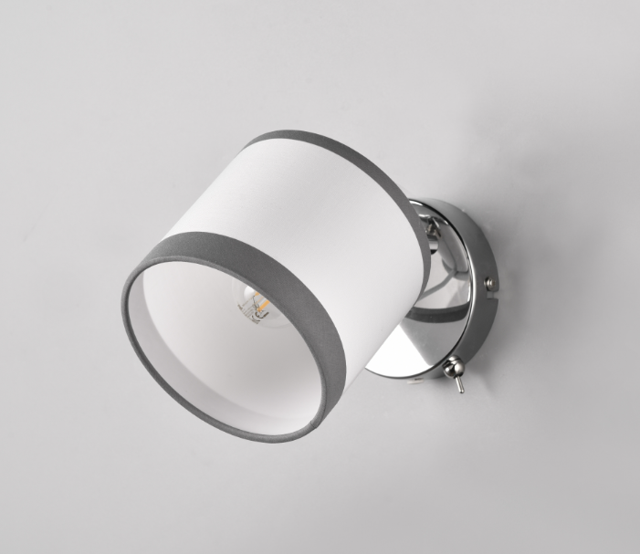 Een spotlamp van het Duitse verlichtingsmerk Trio. De lamp is gemaakt van metaal met een textiel kap en heeft een mooie chromen kleur met witte kap. Er kan een lichtbron met fittingmaat E14 in geplaatst worden van max. 1x 10W (exclusief). De spot kan goed worden geplaatst in verschillende ruimtes zoals hal, slaapkamer en woonkamer, om bijvoorbeeld te zorgen voor mooie accentverlichting. Het armatuur heeft een schakelaar op het product zelf.