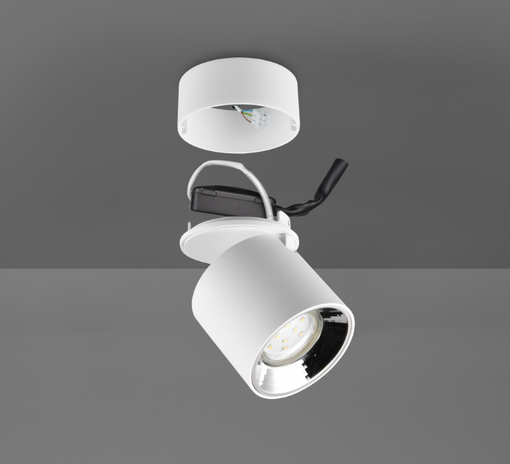Een spotlamp van het Duitse verlichtingsmerk Trio. De lamp is gemaakt van metaal in een compleet mat- witte kleur. Er kan een lichtbron met fittingmaat GU10 in geplaatst worden van max. 1x 10W (exclusief). De spot is geschikt voor plafondmontage en kan op twee manieren worden bevestigd (zie foto's), direct op het plafond of met een stuk ertussen. De spot kan goed worden geplaatst in verschillende ruimtes zoals hal, slaapkamer en woonkamer, om bijvoorbeeld te zorgen voor mooie accentverlichting.