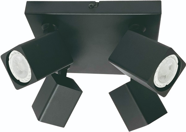 Met een opbouwspot kan je perfect objecten en bepaalde delen goed uitlichten doordat de koppen vaak draai- en kantelbaar zijn. Deze Quadro spot heeft een zwarte kleur  en is in een divers aantal lichtpunten beschikbaar. Met zwart kan je eigenlijk nooit de plank misslaan en daardoor kan deze opbouwspot ook eigenlijk wel in elke interieur geplaatst worden. Het hoekige ontwerp van de spotkoppen geeft de spot net een extra beetje flair. De spot wordt geleverd zonder lichtbron en heeft 4x een GU10 fitting geschikt voor een lichtbron van ieder max. 25W.