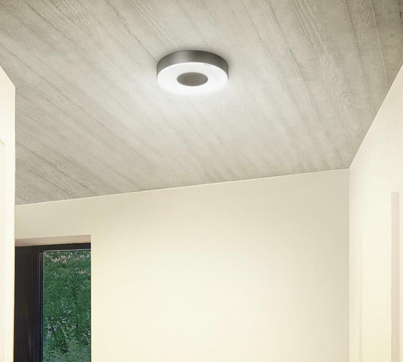 Prachtige plafondlamp van Steinel geschikt voor binnen gebruik. Het mooie design steekt af van uw plafond met de antracieten ring en opaakleurige binnenkant. De lamp beschikt over een bewegingssensor en schakelt het licht in zodra deze beweging detecteert binnen een detectie tot 8 meter en 360 graden rondom. Doordat de lamp Bluetooth heeft is deze in te stellen en te bedienen via de Steinel Connect App waar je veel functies hebt, waaronder instelbaar basis- en hoofdlicht, zachte lichtstart en 4 uur permanente verlichting. Ook kan je meerdere van deze plafondlampen met elkaar koppelen.