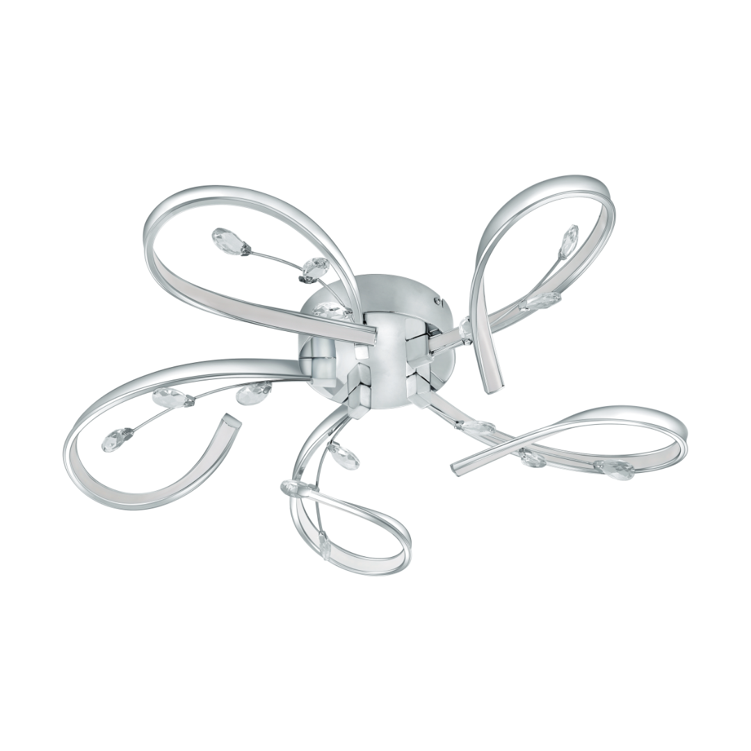 Een plafondlamp met chique uitstraling uit de wall & ceiling collectie van Eglo. Het is een lamp gemaakt van staal en aluminium in een chromen kleur. De lamp wordt inclusief lichtbronnen geleverd met een wattage van 5x 6,6W. De plafondlamp is een goed voorbeeld van een lamp die mooi hangt in de slaapkamer of in de woonkamer. Deze lamp heeft een unieke uitstraling en is een echte blikvanger in uw interieur.
