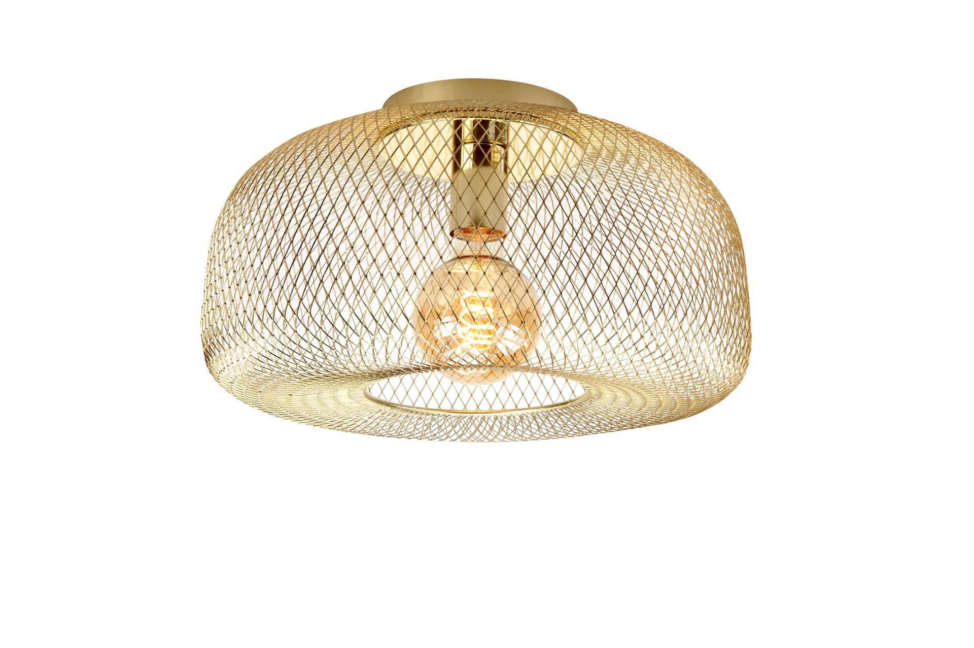 Hoe leuk is deze plafondlamp Honey van Highlight? Door het gave geruiten frame geeft de lamp prachtig licht af. De Honey serie bestaat uit 3 verschillende maten en het betreft hier de middelste maat met een diameter van 40 cm. De lichtbron wordt niet meegeleverd, dus deze kan je geheel naar eigen wens kiezen. Ga je voor een mooie gouden of flame lamp of gewoon helder, alles kan!
