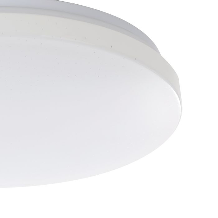 Een mooie plafondlamp uit de collectie van Eglo. De lamp heeft een moderne look en heeft een bijzonder sparkelend effect wat lijkt op sterren in de nacht als dat lamp aan staat. De lamp wordt inclusief LED lichtbron geleverd met een wattage van 18W die een neutraal wit licht uitstraalt. Deze lamp staat goed in verschillende ruimtes zoals hal, woonkamer of slaapkamer. Vanwege de IP44 waarde kan deze lamp ook in de badkamer geplaatst worden!