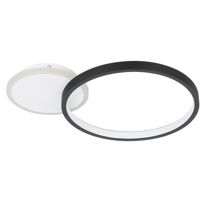 Een mooie plafondlamp uit de collectie van Eglo. De lamp heeft een moderne look in een aparte vorm met twee elementen, gemaakt van aluminium, staal en kunststof in zwart en wit. Met dit minimalistische maar toch opvallende design blend de lamp prachtig in het interieur. De lamp wordt inclusief LED lichtbron geleverd met een wattage van 15W. Met de afstandsbediening kan de kleurtemperatuur van deze lamp worden aangepast van koel wit tot warm wit licht, en de lamp kan hiermee ook gedimd worden. Deze lamp staat goed in verschillende ruimtes zoals hal, woonkamer of slaapkamer.