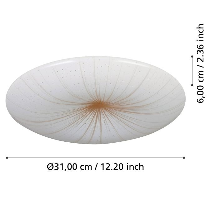 Een mooie plafondlamp uit de collectie van Eglo. De lamp heeft een moderne look in een aparte kleur met wit en gouden accenten. De lamp is gemaakt van staal en kunststof. Met dit minimalistische maar toch opvallende design blend de lamp prachtig in het interieur. De lamp wordt inclusief LED lichtbron geleverd met een wattage van 10W. Deze lamp staat goed in verschillende ruimtes zoals hal, woonkamer of slaapkamer.