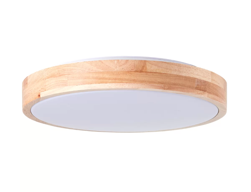 Een mooie plafondlamp uit de collectie van het merk Brilliant gemaakt van metaal, hout en plastic in een witte kleur met een mooie landelijke lichte houtkleur. Het hout wat gebruikt is voor deze lamp is duurzaam en FSC-gecertificeerd. De lamp heeft een mooie stijlvolle uitstraling en staat goed in de hal, slaapkamer of woonkamer. De lamp wordt geleverd inclusief geïntegreerde LED lichtbron die een wattage heeft van 24W. De lamp is prachtig decoratief item die zorgt voor een fijne sfeer met aangenaam licht.