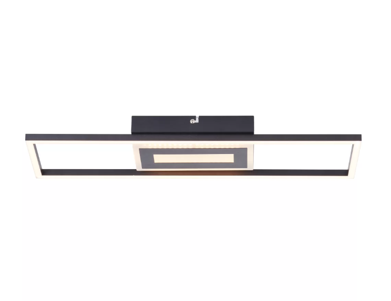 Een moderne plafondlamp uit de collectie van het merk Brilliant. De lamp is gemaakt van metaal en plastic en heeft een zwarte kleur. De lamp wordt geleverd inclusief ingebouwde LED lamp die een wattage heeft van 24 watt. Deze lamp kan goed geplaatst worden in de hal, woonkamer of slaapkamer. De lamp heeft een leuke look door de verschillende elementen en stijlvolle uitstraling.