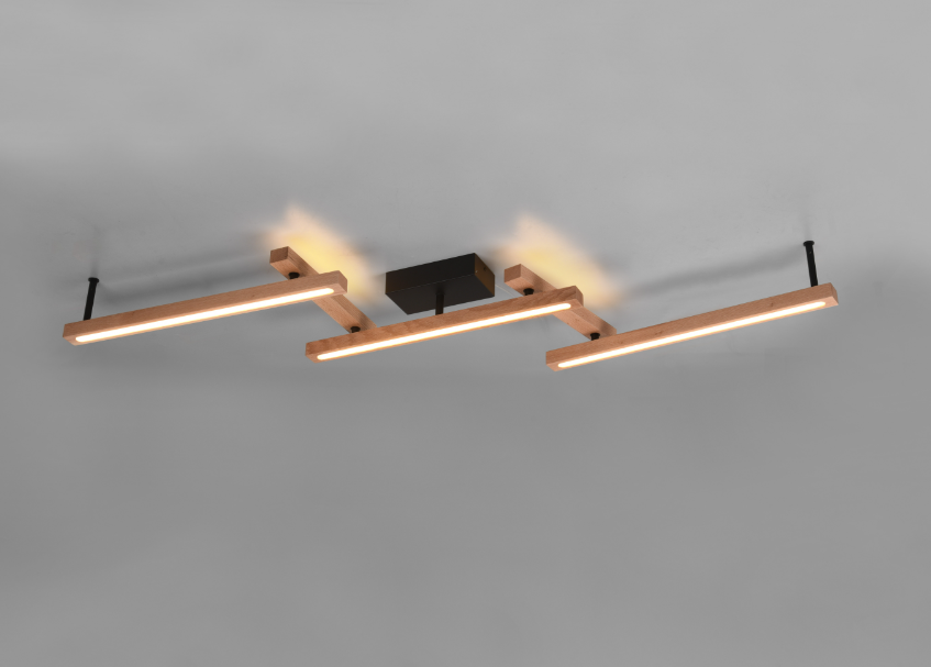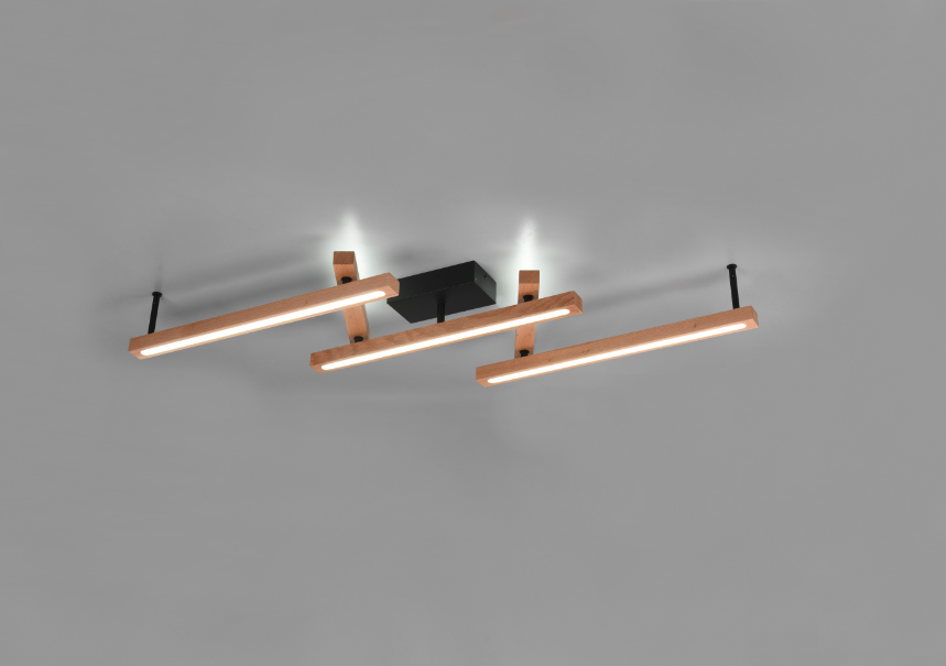 Een plafondlamp van het Duitse verlichtingsmerk Trio. De lamp is gemaakt van metaal en heeft een mooie mat zwarte kleur met een houtelement. De lamp heeft een elegante uitstraling en geeft een landelijke sfeer gecombineerd met een moderne tint. De ingebouwde LED lamp heeft een wattage van 36W. Met de meegeleverde afstandsbediening kunt u de helderheid traploos aanpassen. Daarnaast kunt u de lichtkleur traploos instellen, van warm wit (2700 Kelvin) tot koud wit (6000 Kelvin). Verder maakt de plafondlamp gebruik van moderne LED-technologie, wat betekent dat het licht helder en energiezuinig is. In vergelijking met gewone halogeenlampen bespaart het tot 80% op energiekosten. Bovendien gaan LED-lampen lang mee, produceren ze minder warmte en zijn ze vriendelijk voor het milieu.