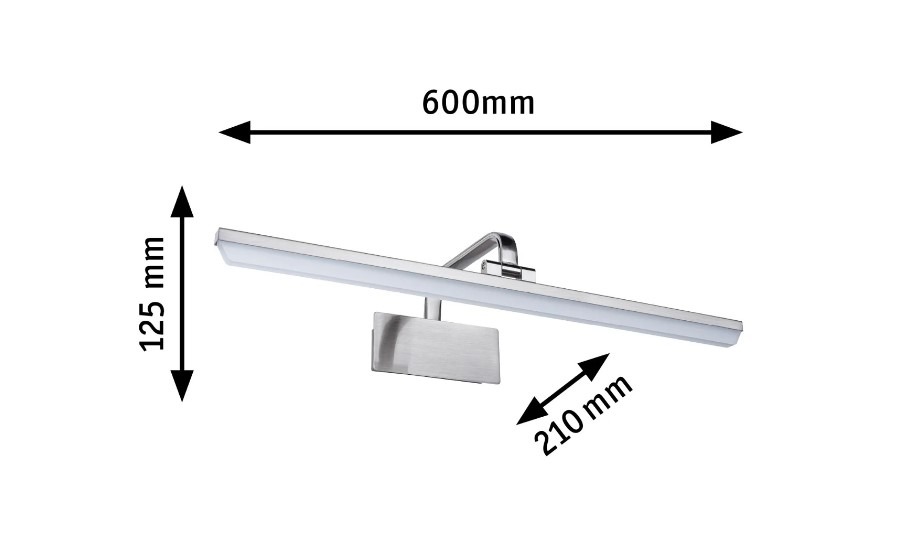 De Schilderijverlichting van Paulmann is uitermate geschikt voor het uitlichten van kunstobjecten, posters en andere kunst aan de muur. Door het scharnier kan je de lichtbalk iets meer richten in de gewenste richting. Deze schilderijlamp dient direct op het lichtnet te worden aangesloten en heeft dus geen snoer met stekker aan het product. Binnen de Renan serie zijn verschillende kleuren en lengtes, het betreft hier de langste versie in de kleur geborsteld aluminium.