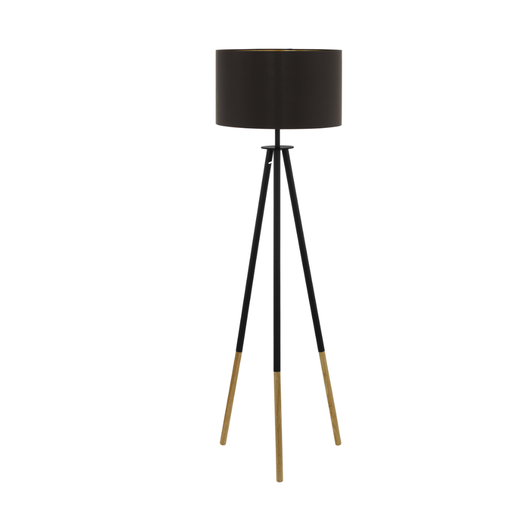 Een mooie vloerlamp uit de vintage vloerlampen collectie van Eglo. De lamp heeft een vintage uitstraling in een bruine kleur met cappuccino en goud. De lamp wordt exclusief lichtbron geleverd en is geschikt voor een wattage van max. 1x 60W. De vloerlamp is gemaakt van staal, hout en textiel. Deze lamp staat goed in de woonkamer en heeft een voetschakelaar met snoerlengte van 270 cm.
