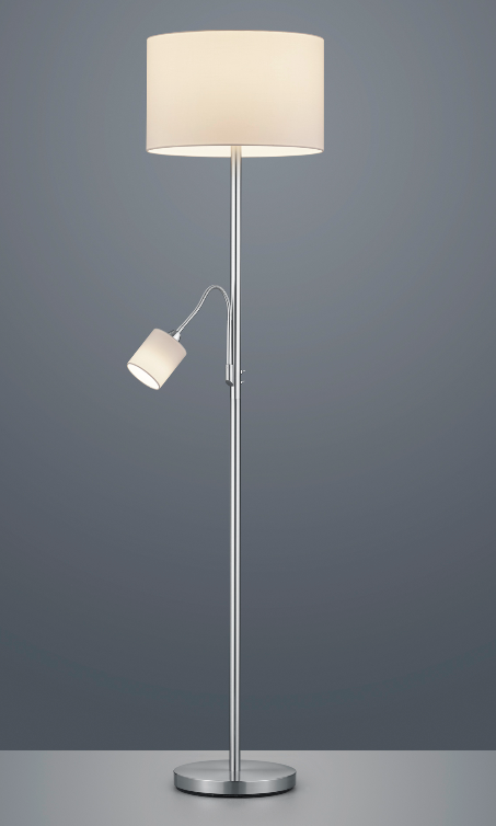Een moderne vloerlamp uit de serie Hotel van het merk Trio. De Hotel 403900201 heeft twee lichtbronnen die apart bediend kunnen worden, waardoor deze vloerlamp ideaal als leeslamp in de woonkamer. De lamp is gemaakt van nikkel-mat metaal en heeft twee stoffen kappen in de kleur wit. Deze kleurencombinatie geeft de lamp een neutraal en modern uiterlijk. De Hotel vloerlamp heeft een hoogte van 170 cm heeft een E27 fitting en een E14 fitting. De E27 fitting is geschikt voor een maximaal wattage van 60W, de E14 fitting is geschikt voor een maximaal wattage van 18W. De lamp wordt exclusief lichtbronnen geleverd. Met de handmatige schakelaar kan u de lichtbronnen los van elkaar aan- en uitzetten.