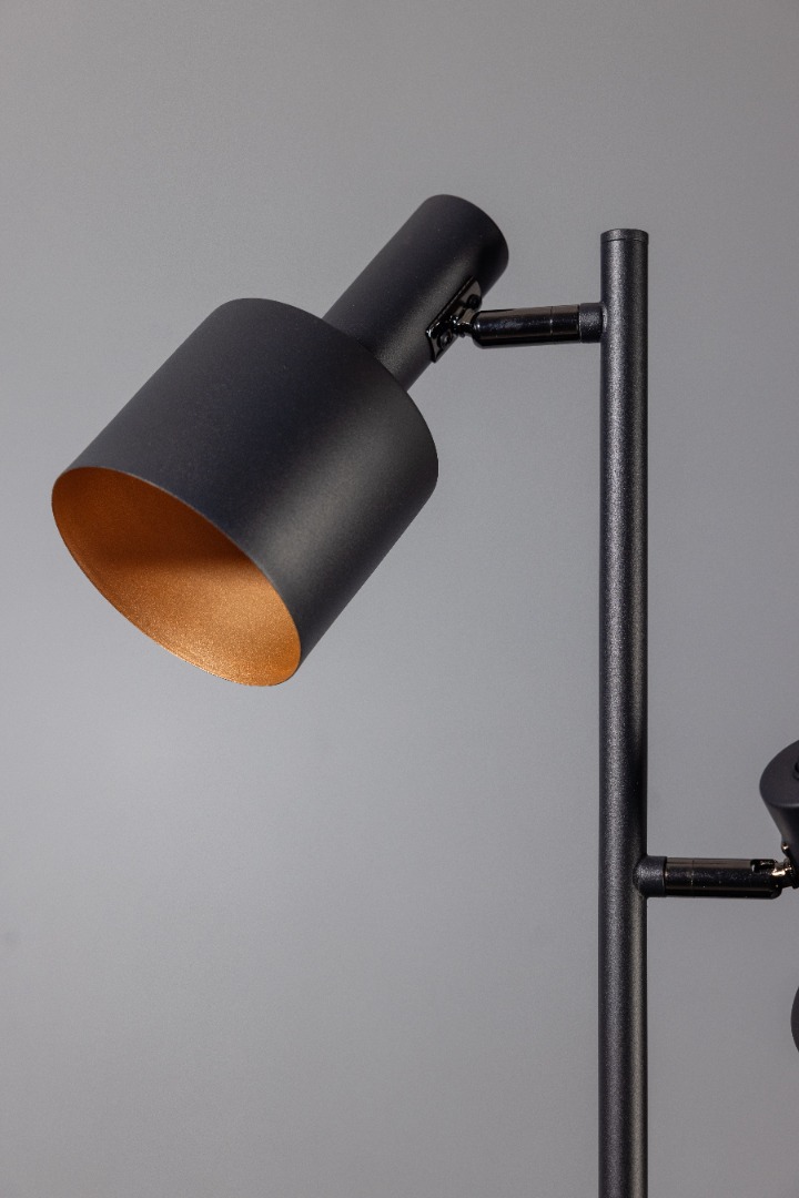 Een mooie vloerlamp van ETH met een moderne uitstraling in een zwarte kleur en gouden binnenkant in de kapjes. Deze vloerlamp staat prachtig in uw interieur en doet echt denken aan de retro-tijd. Het fijne aan deze lamp is, dat iedere lamp een eigen schakelaar op de kap heeft dus apart te bedienen zijn. De lamp heeft 3x E27 fitting geschikt voor een lichtbron van ieder max. 15W. Ook leuk om te combineren met de andere lampen uit de Sledge serie.