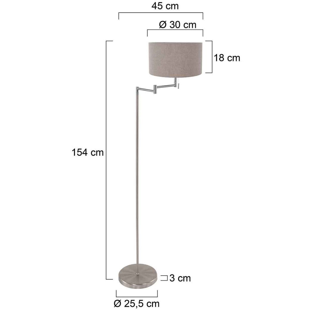 Maak uw woonkamer levendig met deze staalkleurige vloerlamp uit de Mexlite collectie van Steinhauer. De lamp heeft een grijze linnen kap. De zwenkarm zorgt ervoor dat deze lamp licht geeft waar het gewenst is. De lamp is te bedienen middels een aan/uit schakelaar in de vorm van een trektrouw. De lamp is exclusief lichtbron geschikt voor een vermogen van maximaal 40 Watt. De lamp kan gedimd worden middels externe (niet meegeleverde) dimmer.
