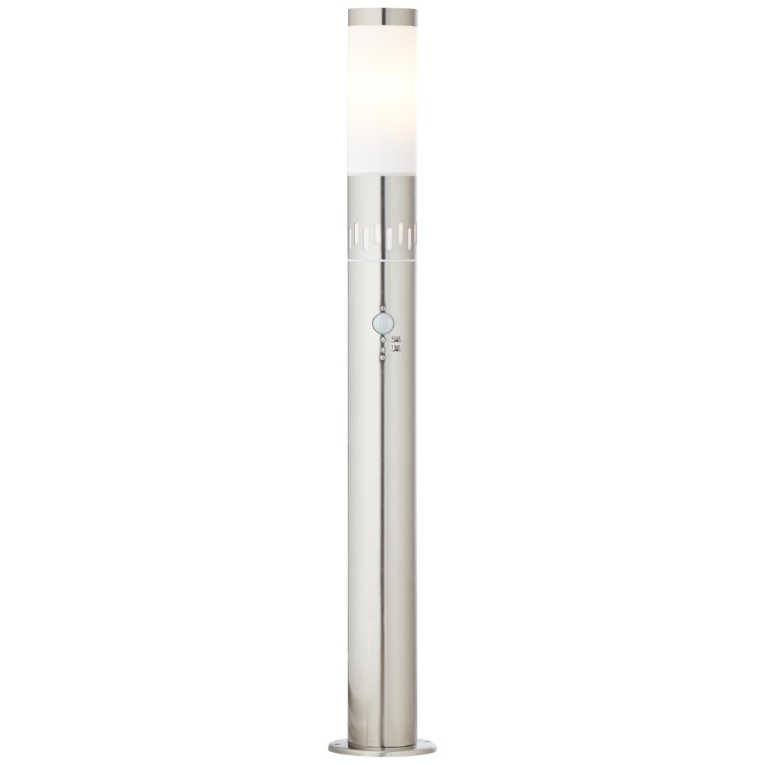 Een mooie tuinlamp uit de collectie van het merk Brilliant die mooi staat in de tuin bijvoorbeeld langs een tuinpad.  De lamp is gemaakt van metaal en kunststof en heeft een RVS kleur. De lamp wordt geleverd inclusief twee lichtbronnen. Één met een E27 fitting die beschikt over 11W en één ingebouwde LED lamp met 0,72W.  Deze lamp kan goed geplaatst worden in de tuin dankzij de IP44 waarde (splash-proof). Deze lamp beschikt tevens over een bewegingssensor. De dectectie afstand is tussen de 4m en 10m. De lichtgevoeligheid is aanpasbaar evenals de tijd dat de lamp aan blijft staan (tussen de 5 sec. en 5 min.). Ook heeft de lamp een schemerschakelaar, de LED als decoratieverlichting schakelt automatisch aan bij schemering.