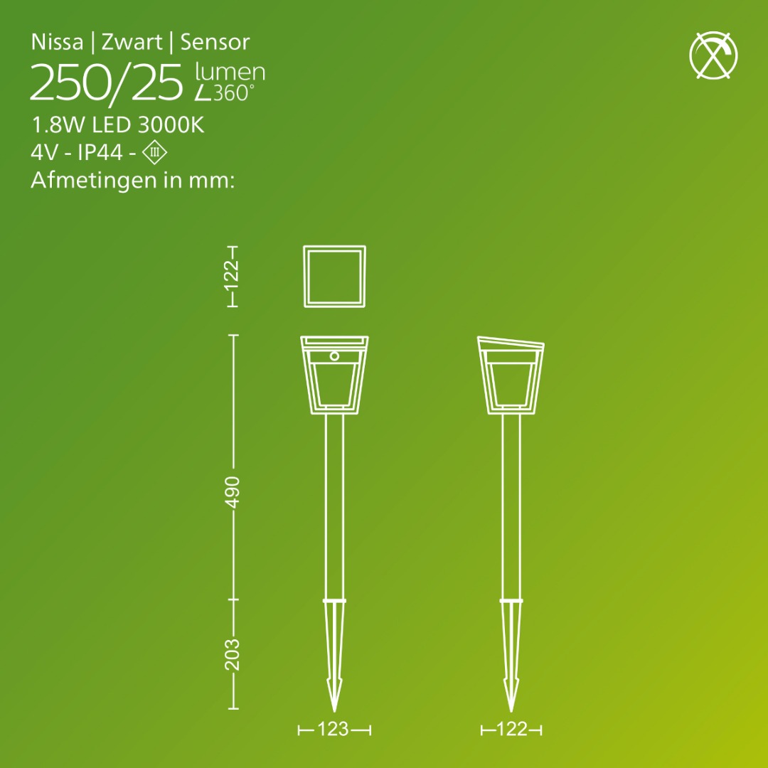 Een moderne, leuke vloerlamp uit de Solar collectie van Philips. De lamp werkt op solar, dus heel eenvoudig in de grond schroeven en laten opladen door de zon. Kan zowel met een grondpin (meegeleverd) worden bevestigd als op de grond geboord. Daarnaast heeft deze lamp twee lichtstanden. Het licht dimt wanneer er niemand is en zodra de sensor beweging detecteert gaat de lamp automatisch helderder licht schijnen. Zo creëer je een veilig gevoel en heb je licht wanneer je dat nodig hebt en verbruik je minder energie.