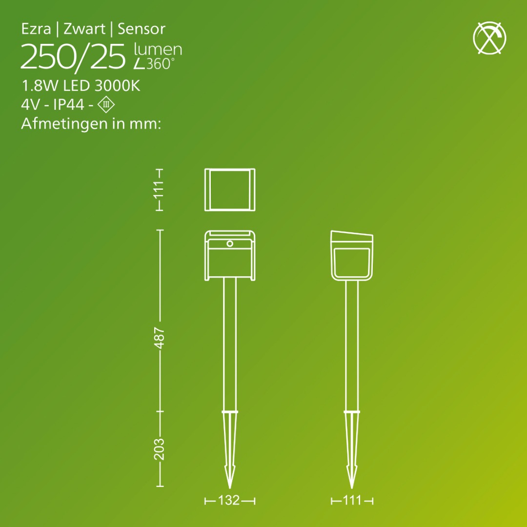 Een leuke vloerlamp uit de Solar collectie van Philips. De lamp werkt op solar, dus heel eenvoudig in de grond steken en laten opladen door de zon. Kan zowel met een grondpin (meegeleverd) worden bevestigd als op de grond geboord. Daarnaast heeft deze lamp twee lichtstanden. Het licht dimt wanneer er niemand is en zodra de sensor beweging detecteert gaat de lamp automatisch helderder licht schijnen. Zo creëer je een veilig gevoel en heb je licht wanneer je dat nodig hebt en verbruik je minder energie. Staat bijvoorbeeld erg leuk langs het tuinpad of tussen de bloemen en planten. Ook leuk om te combineren met de wandlamp uit dezelfde lijn.