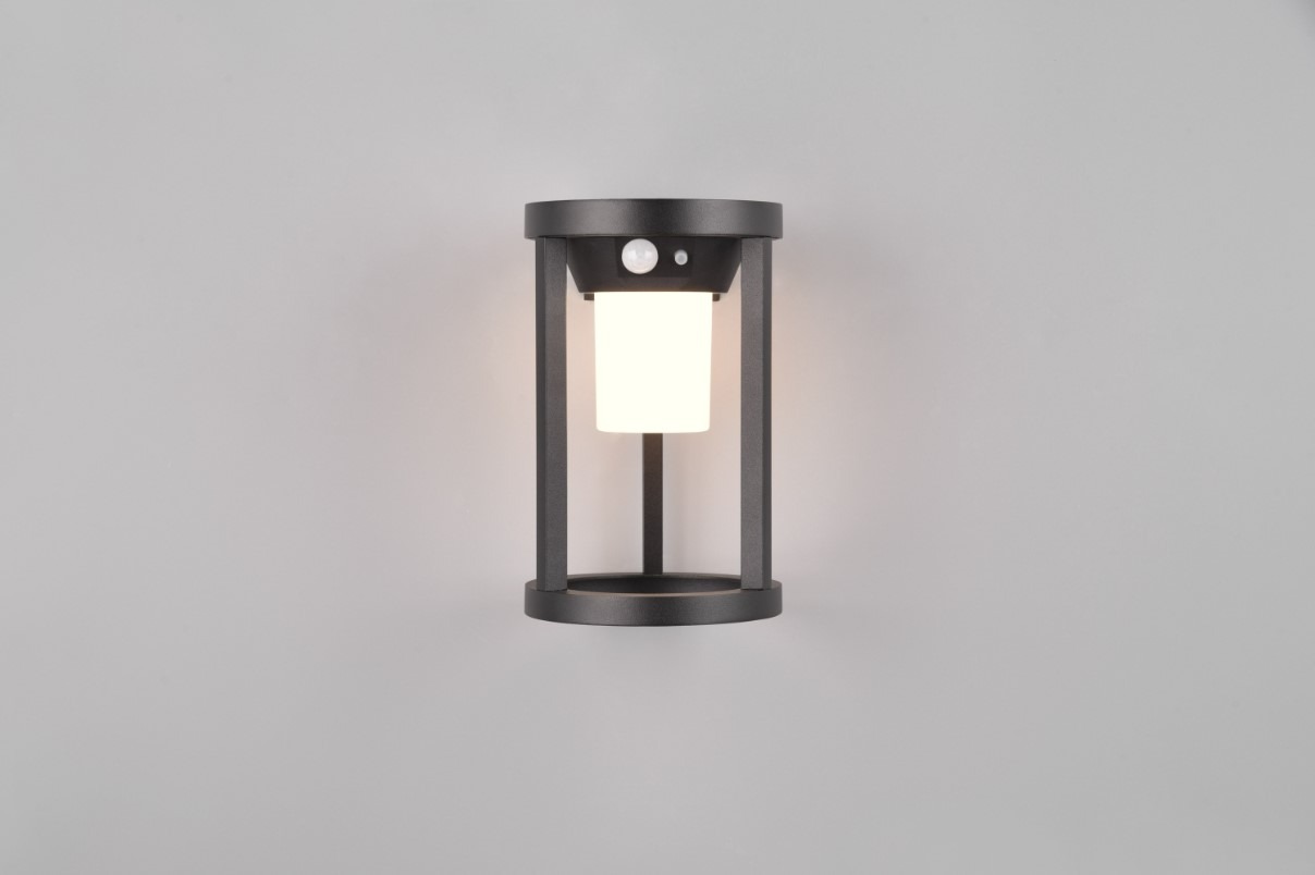 Deze armatuur zorgt met zijn geïntegreerde zonnepaneel voor licht waar dat nodig is zonder dat een stroomaansluiting nodig is. Deze wandlamp heeft een permanent oriëntatielicht dat bij schemering of in het donker automatisch oplicht met een helderheid van 10%. Als er beweging is in de directe omgeving schakelt het licht naar 100%. De lichtduur en gevoeligheid zijn naar wens instelbaar. Deze buitenlamp welke uitgevoerd is in mat zwart is gemaakt van gegoten aluminium. Door beschermingsklasse IP54 is de lamp weersbestendig. Deze lamp wordt inclusief energiezuinige SMD-LED lamp geleverd.