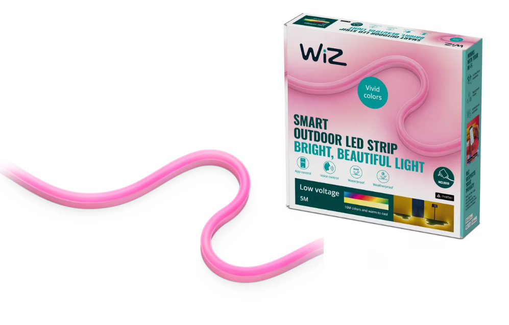 Met deze flexibele buigbare lichtstrip maak je de mooiste creaties en door de IP waarde van 65 nu ook buiten! Hiermee laat je je tuin nog meer tot bloei komen. Eenvoudig aan te sluiten op je huidige Wiz systeem. Geniet van de diverse wittinten alsmede de 16 miljoen kleuren. Gemakkelijk te dimmen in de WiZ app maar ook via spraakbesturing. Ook kun je in de app gebruik maken van timers en schema's en je hele Wiz systeem automatiseren.