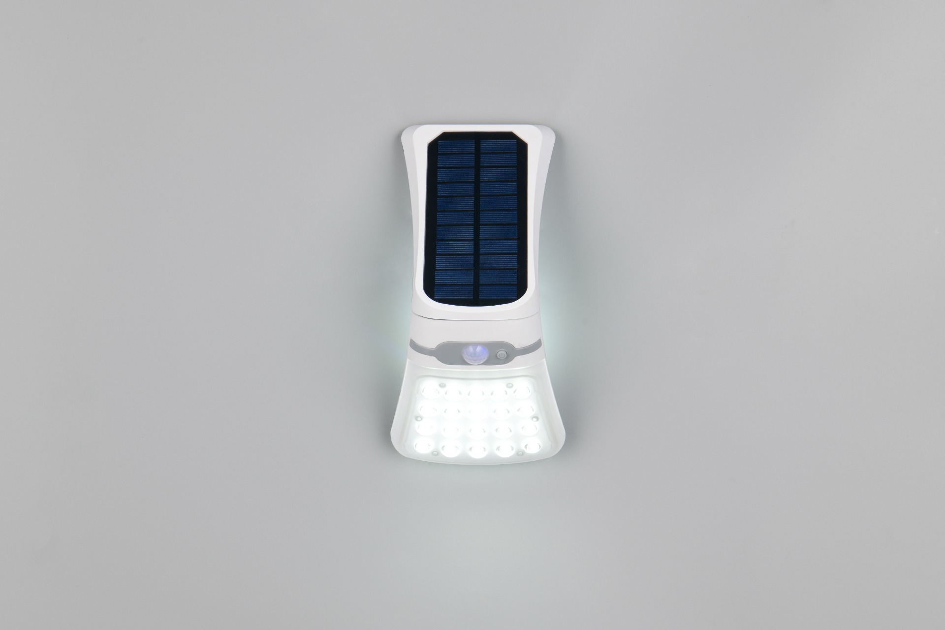 Een moderne wandlamp uit de outdoor collectie van Trio. Deze Diadema wandlamp heeft een strak en eenvoudig ontwerp en komt prachtig tot zijn recht op de gevel, bijvoorbeeld naast de voordeur. De lamp heeft een IP44-classificatie en is daardoor uitstekend geschikt voor buitengebruik. Verder levert de wandlamp niet verblindend, aangenaam licht. De Diadema is uitgevoerd in wit kunststof en voorzien van een geïntegreerde SMD-LED lichtbron van 3,5 Watt. Deze LED produceert een helder, neutraal wit licht met een kleurtemperatuur van 4000 Kelvin en een lichtopbrengst van 300 lumen. De lamp wordt aangedreven door een ingebouwd zonnepaneel, wat zorgt voor duurzame en energiezuinige werking zonder dat aansluiting op netstroom nodig is. Daarnaast beschikt de Diadema over een handige schakelaar, waarmee de lamp eenvoudig kan worden in- of uitgeschakeld. De lamp is bovendien kantelbaar, zodat u het licht kunt richten zoals u wilt, ideaal voor het verlichten van uw tuin, oprit of terras. Deze uitvoering is uitgerust met een geïntegreerde bewegingssensor en schemerschakelaar. De lamp schakelt automatisch in zodra beweging wordt gedetecteerd binnen een straal van 10 meter, wat zorgt voor extra gemak en energiebesparing. Deze wandlamp is niet dimbaar.