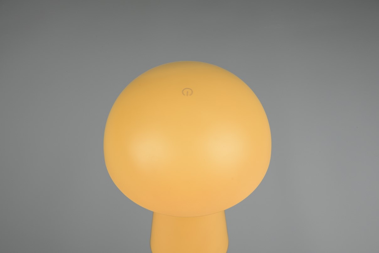 Een tafellamp voor buiten van het Duitse verlichtingsmerk Trio. Een moderne interpretatie van de 'mushroom' lamp uit de zeventiger jaren. Dit lampje is gemaakt van kunststof en uitgevoerd in de kleur helder geel. Liever een andere kleur? De Lennon is verkrijgbaar in tal van kleuren. Met een IP-waarde van 44 is deze tafellamp spatwaterdicht. Deze armatuur werkt op een oplaadbare accu welke via USB-poort en meegeleverde oplaadkabel opgeladen dient te worden. Na 3,5 uur opladen gaat hij 7 uur mee. Het is hierdoor mogelijk om het lampje overal te gebruiken in de tuin of op de camping. De lamp is al voorzien van een lichtbron, te weten een geïntegreerde SMD-LED lamp met een wattage van 2W. De lamp heeft een aanraakschakelaar voor 3 lichtsterkteniveaus.