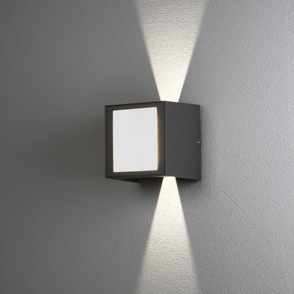 Prachtige antraciet grijze aluminium wandlamp met opaal kleurig glas. Lichtbron schijnt twee kanten op en de stralingshoek van deze lamp is verstelbaar. Daarnaast is de voorzijde voorzien van een LED vlak, waardoor ook de voorkant van de lamp licht straalt. Moderne lamp voor aan de zijkant van het huis, of voor naast uw voordeur! Deze lamp wordt inclusief lichtbronnen (3x 3W) geleverd.