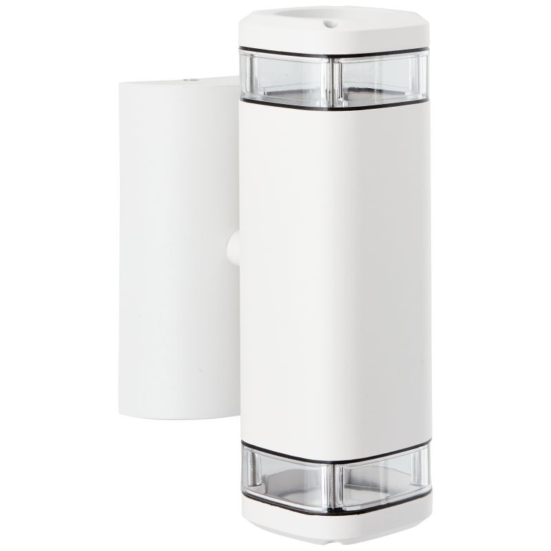 Een mooie wandlamp uit de collectie van het merk Brilliant die geplaatst kan worden in de buitenomgeving. De lamp is gemaakt van metaal en glas en heeft een witte kleur. De lamp wordt geleverd exclusief lichtbronnen en heeft twee GU10 fittingen die geschikt is voor maximaal 2x 18 watt. De lamp kan goed geplaatst worden bijvoorbeeld naast een deur of aan een tuinhek. De lamp heeft een mooie Up & Down lighter waardoor het licht in een interessante manier naar boven en beneden schijnt.
