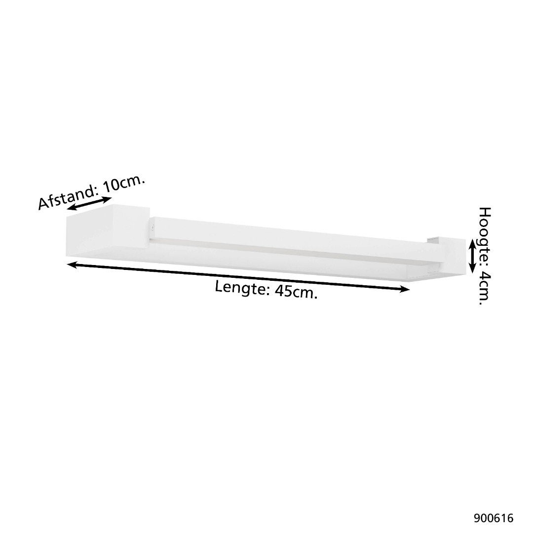 • Afmetingen: Lengte 45 cm, Hoogte 4 cm, Uitbouw 10 cm