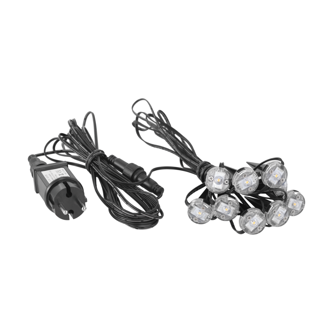 Een set met meerdere grondspiezen van Eglo Outdoor. De lampen kunnen goed geplaatst worden in uw tuin, eenvoudig te plaatsen met de spies. Deze lampen hebben een IP waarde van IP65, waardoor de lampen perfect zijn voor buitengebruik. De lampen zijn gemaakt van kunststof en hebben een zwarte/transparante kleur. De lampen hebben een ingebouwde LED lichtbron van 3W. De lampjes beschikken over een kabel + stekker.