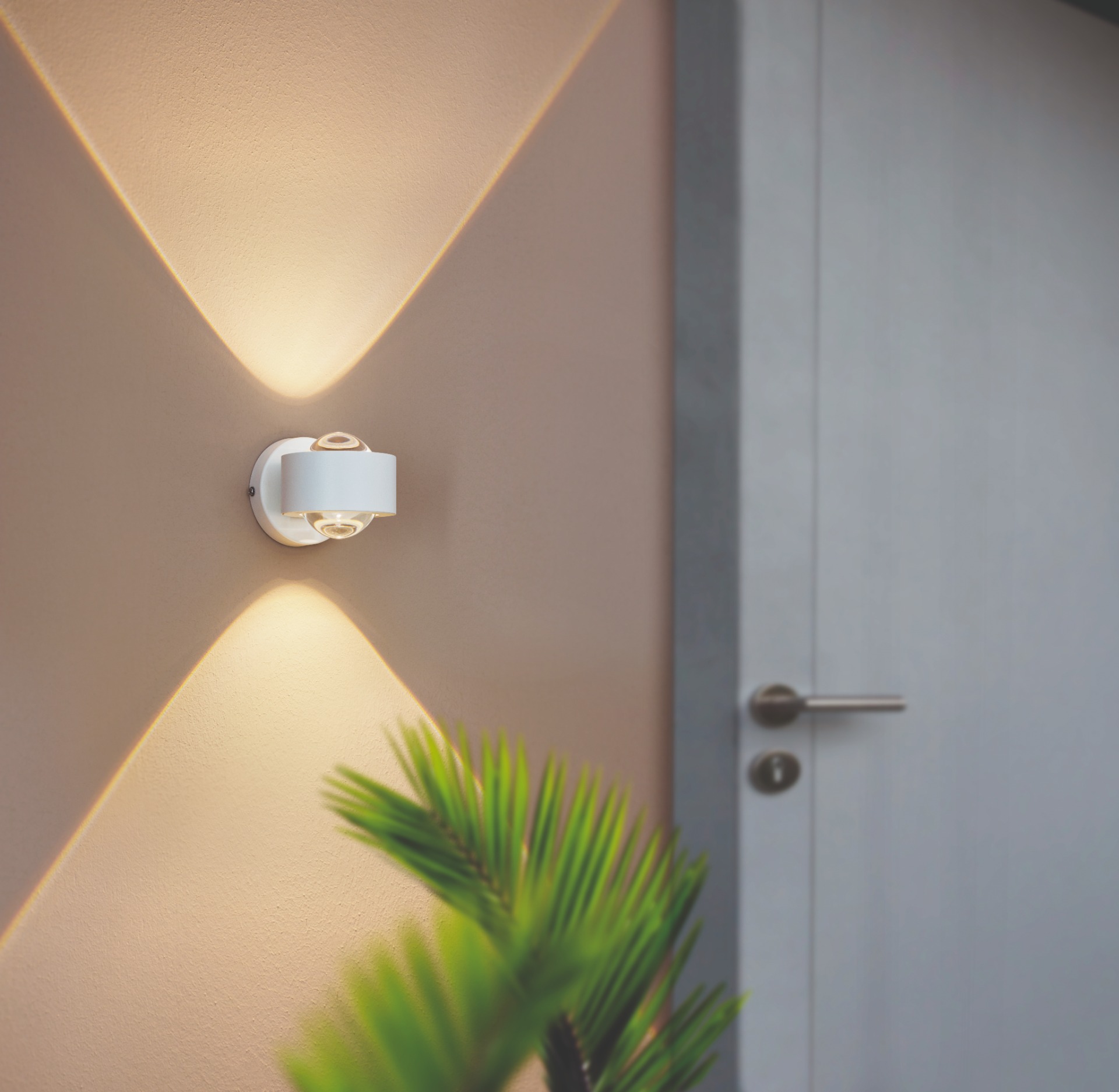 Een mooie up en downlighter van Eglo. De lamp schijnt zowel aan de boven als onderkant warm licht van 3000K. Er zit een geïntegreerde ledmodule in. De lamp heeft een IP waarde van 44 en dus geschikt voor buitengebruik.