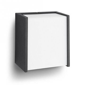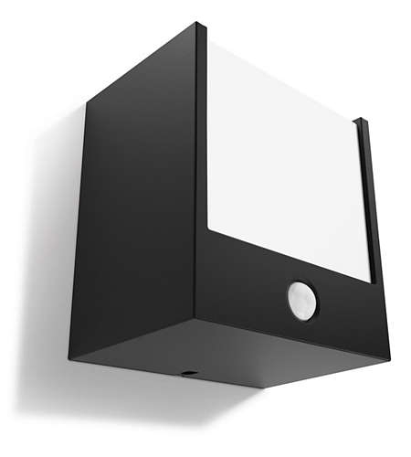 Deze zwart kleurige kubusvormige Philips myGarden-wandlamp geeft uw tuinmuur een moderne touch. Hoogwaardige lichteffecten worden door de openingen aan de onder- en bovenkant op de muur geprojecteerd.