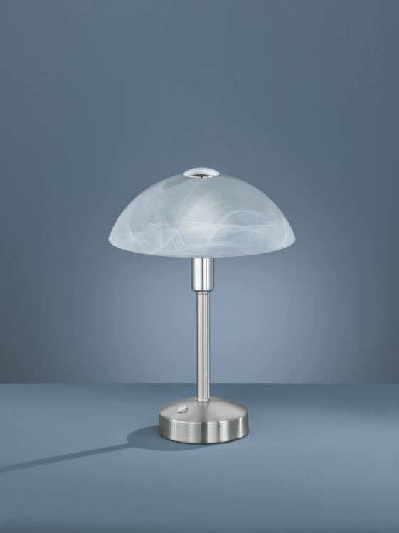 Een tafellamp van het merk Trio die rechtstreeks uit de 70's lijkt te komen. De 'mushroom' lamp is een populaire vintage trend die in veel interieurs toepasbaar is. Het pootje en de bolle kap doen denken aan de vorm van een paddenstoel. Dit tafellampje is gemaakt van metaal en uitgevoerd in de kleur nikkel mat. De lamp kan goed worden geplaatst op een bureau, kast of bijzettafel, in de woonkamer of hal bijvoorbeeld. De kap welke gemaakt is van albastkleurig glas heeft een diameter van 23 cm. Deze lamp wordt inclusief lichtbron geleverd, te weten een geïntegreerde SMD-LED lamp met een wattage van 4W. Deze armatuur heeft een aanraakschakelaar voor 3 lichtsterkteniveaus.