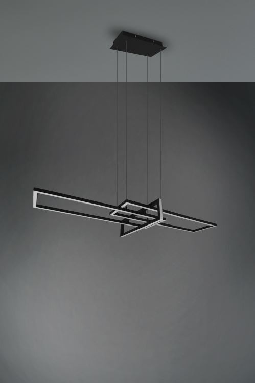Een moderne hanglamp van het merk Trio. Deze lamp is gemaakt van metaal en uitgevoerd in de kleur mat zwart. De hanglamp kan goed worden toegepast in de woonkamer of boven de eettafel in de eetkamer. Zelfs als deze lamp uitstaat is het een stijlvol accessoire dat de aandacht trekt. Deze hanglamp wordt inclusief lichtbron geleverd, te weten een geïntegreerde SMD-LED lamp met een wattage van 34W. De lichtsterkte van deze armatuur kan via de normale lichtschakelaar op 3 verschillende niveaus ingesteld worden. De hanglamp kan in de hoogte versteld worden. Let wel, deze hanglamp dient op een normale lichtschakelaar geplaatst te worden en is niet geschikt voor een externe dimmer.