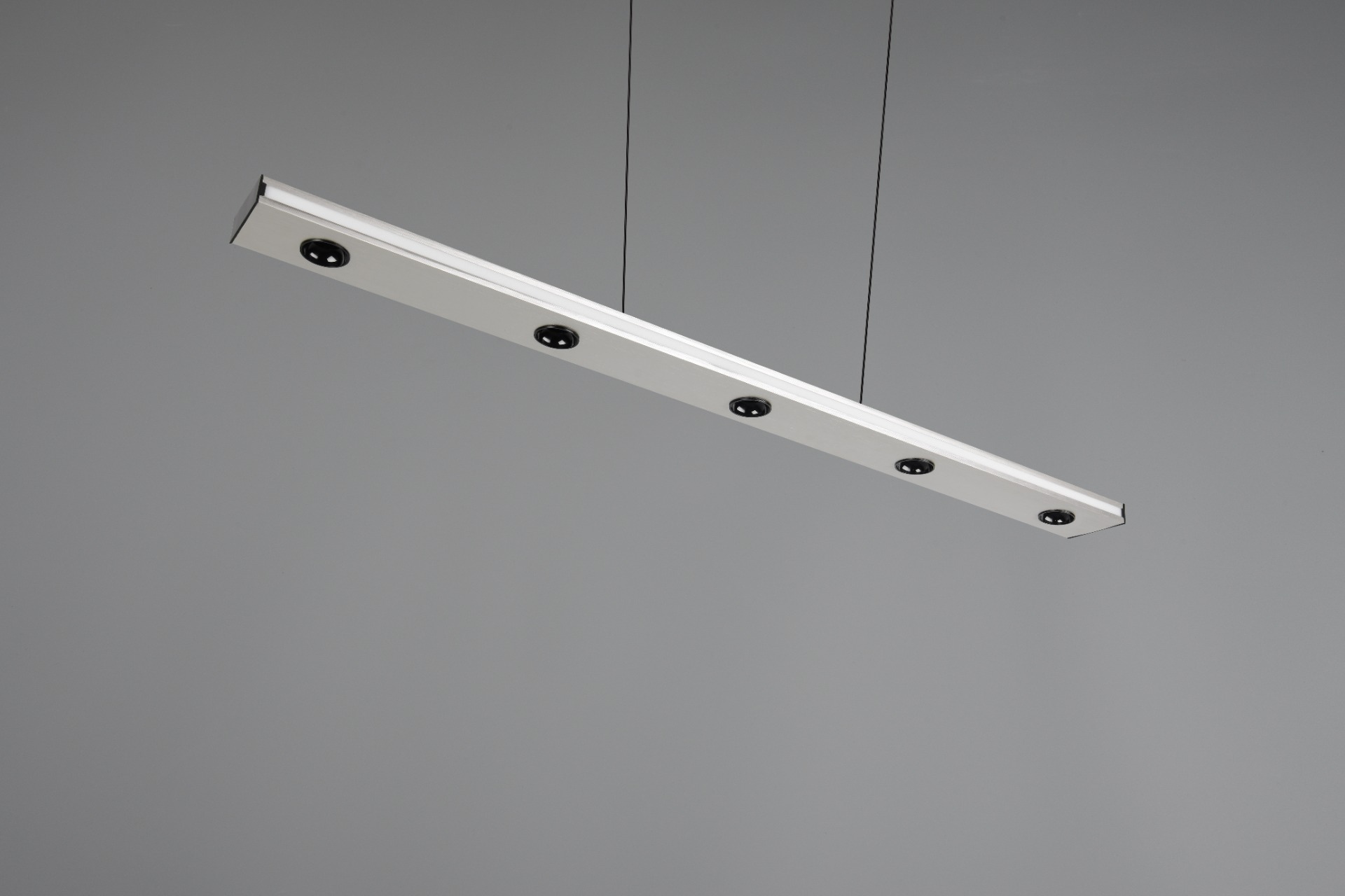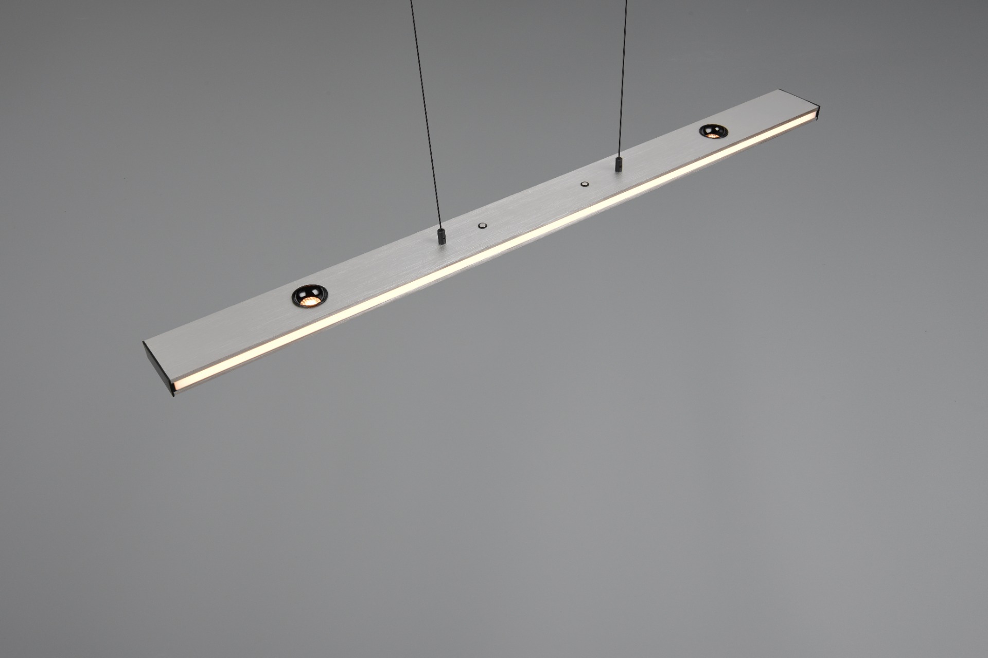 Een moderne hanglamp van het merk Trio. Deze elegante hanglamp is gemaakt van metaal en uitgevoerd in de kleur nikkel mat. De lamp kan goed worden toegepast in de woonkamer of boven de eettafel in de eetkamer, om u van functioneel licht te voorzien. Deze lamp geeft namelijk licht naar boven en naar onder. Deze hanglamp wordt inclusief lichtbron geleverd, te weten 8 stuks geïntegreerde SMD-LED lampen met een wattage van 4,5W en 10W. De lampen zijn apart schakelbaar en er zitten hiervoor twee schakelaars aan de bovenkant van het armatuur. De lichtkleur (lichttemperatuur in graden Kelvin) is op verschillende niveaus instelbaar. De hanglamp kunt u in de hoogte verstellen tijdens het installeren, zodat deze op een mooie hoogte boven de eettafel komt te hangen. Dankzij de geheugenfunctie wordt het laatst ingestelde lichtscenario opgeslagen. Let wel, deze hanglamp dient op een normale lichtschakelaar geplaatst te worden en is niet geschikt voor een externe dimmer.