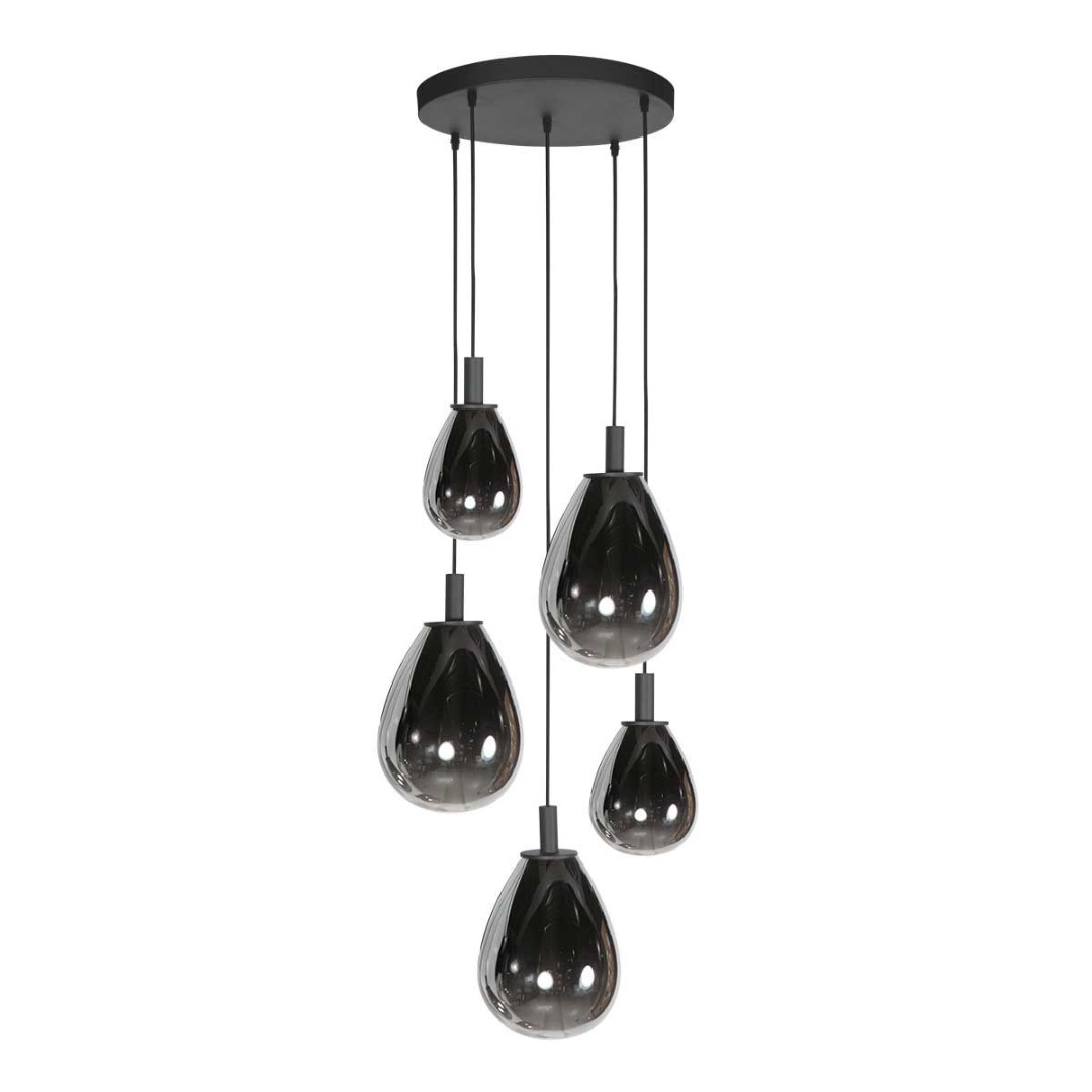 Zwarte hanglamp met stijlvol design uit de Glimsy collectie. De hanglamp heeft 5 glazen in 2 verschillende maten. De lamp is bij installatie in hoogte verstelbaar (50–390 cm) en combineert een speels design met praktische verlichting. Door de extra lange kabels is de Glimsy perfect geschikt voor gebruik in een vide of als blikvanger in hoge ruimtes. Ook boven een ruime, brede eettafel komt dit model prachtig tot zijn recht. De lamp heeft 2900 lumen en warm wit licht (2700K). De lamp is eventueel ook dimbaar (met een externe exclusieve dimmer) waarmee je de lichtsterkte kan aanpassen. Leuk te combineren met de andere lampen in de gelijknamige collectie.