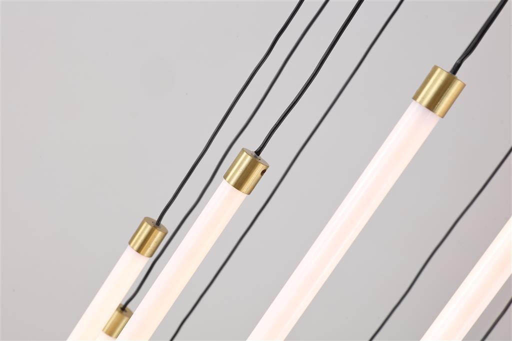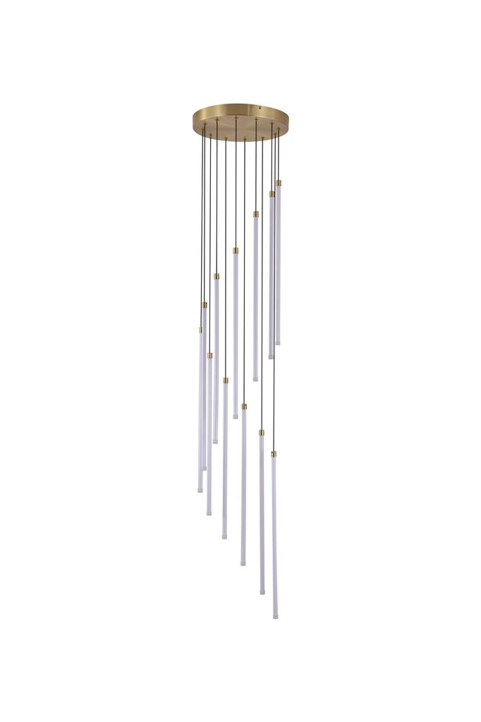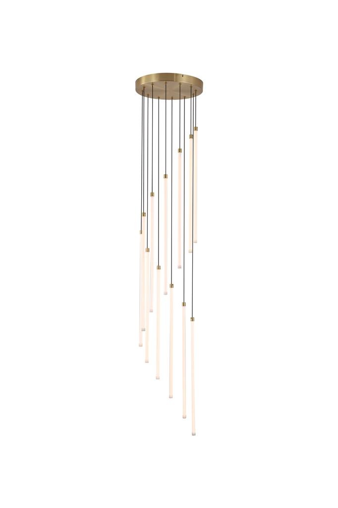 De Flare 12-lichts hanglamp met messingkleurige details uit de collectie van Searchlight. Geef je interieur een indrukwekkende look met de hanglamp met elegant watervaleffect. De matte diffusers zorgen voor een zachte gelijkmatige lichtverdeling. Met de afstandsbediening kunt u kiezen uit vijf instelbare kleurtemperaturen: 2700-3500-4500-5500-6500K (van warm tot koel) om de juiste sfeer te creëren. Deze hanglamp is perfect voor ruimtes met hoge plafonds en komt volledig tot zijn recht in royale entrees, trappenhuizen, eetruimtes en commerciële lobby’s. Inclusief LED lichtbronnen van 65 watt en 5098 lumen totaal. Tijdens installatie is de gewenste hoogte te bepalen.