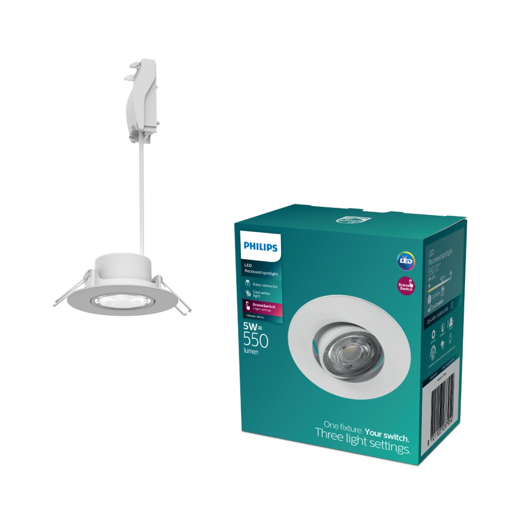 Deze Cilantro inbouwspot is een mooie, moderne inbouwspot met veel pluspunten. Zo kan de spot tot 30 graden kantelen om dingen beter uit te lichten, is het design plat en heeft de spot een lage inbouwdiepte en de spot heeft een geïntegreerde led lichtbron met Scene Switch technologie. Hiermee kan je de spot dimmen in 3 standen (100%-40%-10%), heel eenvoudig door middel van de wandschakelaar gewoon omklikken. Zo kan je de de sfeer aanpassen zonder ingewikkeld installatiewerk van een dimmer. De lichtbron heeft een koel witte kleur van 4000K en beschikt over EyeComfort technologie en verblind hierdoor niet. De spot heeft een IP waarde van 20 en is daarom alleen geschikt voor droge ruimtes en niet voor bijv. de badkamer of buiten.