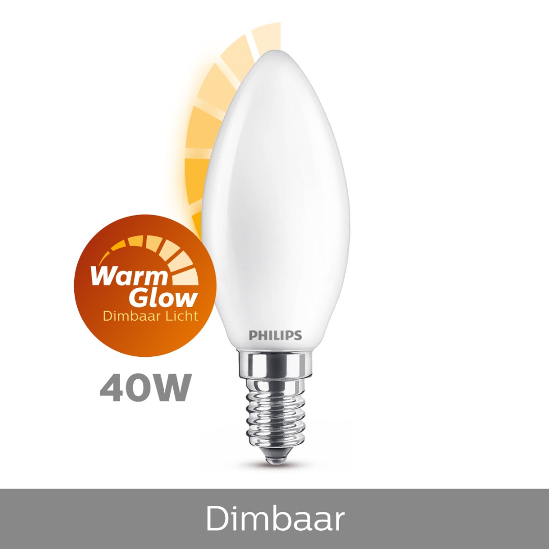 1x Philips LED Kaars dimbaar mat (3,4W (40W), E14, Warm Glow)