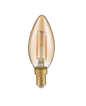 Een mooie energiezuinige LED lamp met kaars vorm van het Duitse verlichtingsmerk Trio. Deze lichtbron is gemaakt van glas in een mooie gouden/amber kleur. Deze lamp heeft een E14-fitting (kleine fitting) en een wattage van 2W. De lichtopbrengst bedraagt 225 lumen en heeft een kleurtemperatuur van 2700K (warm wit). De lamp is niet dimbaar.