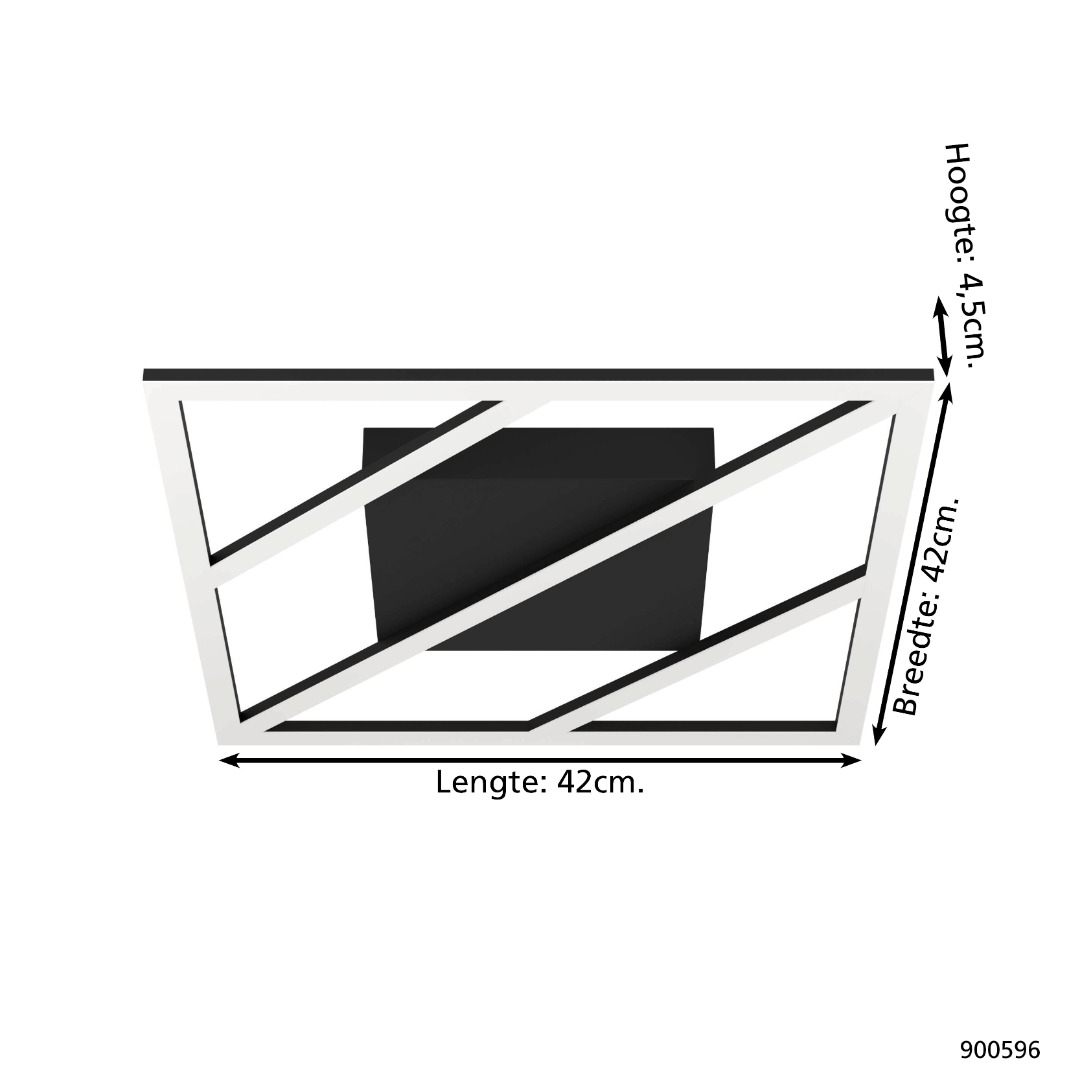 Een plafondlamp uit de collectie van Eglo met een moderne uitstraling. De lamp is gemaakt van alumnium, staal en kunststof in een zwart met witte kleur. Deze lamp kan toegepast worden in verschillende delen van het interieur zoals hal, slaapkamer of woonkamer. De lamp wordt inclusief LED lichtbron geleverd die een wattage heeft van 21W.