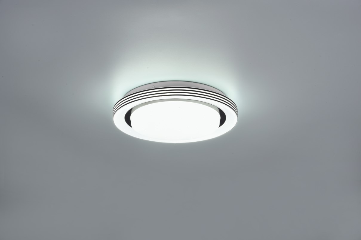 Een moderne plafondlamp welke ook voor wandmontage geschikt is. Deze plafonnière kan de algemene verlichting verzorgen in bijvoorbeeld hal, slaapkamer of toilet. Het witte kunststof heeft een schitterend sterreneffect en laat aangenaam niet-verblindend diffuus licht door. De plafondlamp wordt inclusief geïntegreerde SMD-LED lamp geleverd. De helderheid (10-100%) en lichttemperatuur (3000-6000K) van de lichtbron is traploos instelbaar met de meegeleverde afstandsbediening. Met de nachtlampfunctie (helderheid 5%) kunt u veilig uw weg vinden in het donker. Dankzij de geheugenfunctie wordt de laatste instelling opgeslagen en gebruikt wanneer de lamp opnieuw ingeschakeld wordt. Let wel, deze plafondlamp dient op een normale lichtschakelaar geplaatst te worden en is niet geschikt voor een externe dimmer.