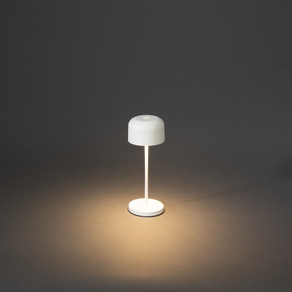 Gezelligheid kent geen tijd met deze prachtige Lille Mini tafellamp uit de outdoor collectie van Konstsmide. Deze draadloze lamp laad je eenvoudig op met de meegeleverde usbkabel en eenmaal opgeladen neem je hem overal mee naar toe. De lamp heeft twee verschillende lichtkleuren 2200K en 2700K zodat je nog wat kan spelen met de sfeer. Met de aan/uitknop op het armatuur switch je tussen de 2 lichtkleuren maar kan je ook nog eens de lamp dimmen. Zo maak je de warme zomeravonden nog gezelliger. De Lille lamp is er in een grote en kleine versie beschikbaar in diverse kleuren. Het betreft hier de kleine versie van 20 cm in een witte kleur.