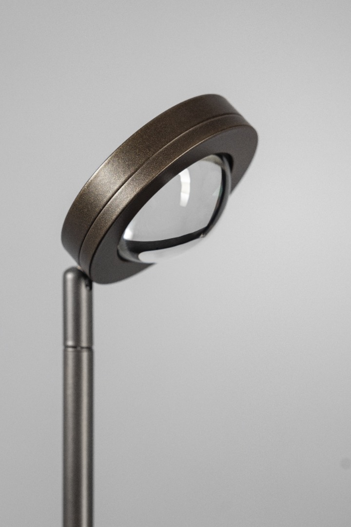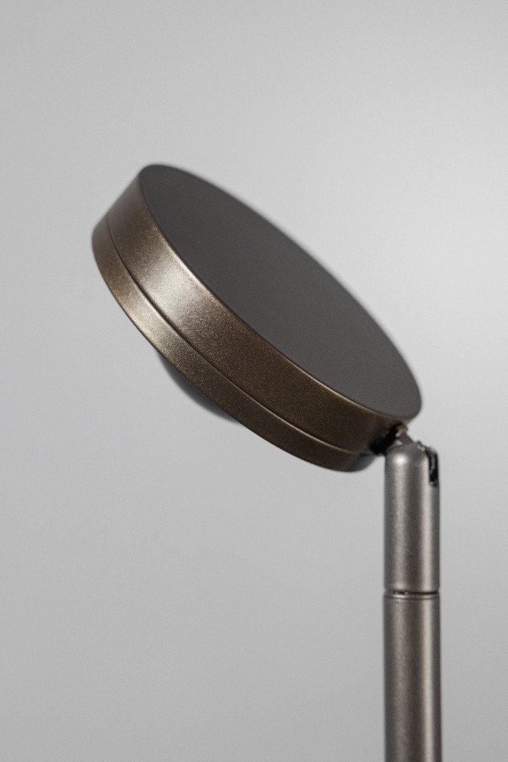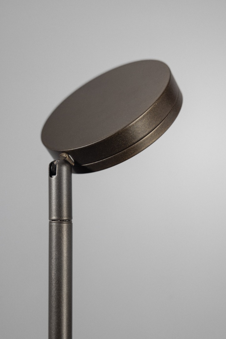 Een moderne vloerlamp van ETH. De vloerlamp heeft een geïntegreerde ledmodule van 9W met 653 lumen en een warme lichtkleur van 2700K. Bovendien is de lamp ook nog eens te dimmen in 3 standen door middel van de schakelaar op het snoer. Deze ronde kop van deze lamp (welke vrij richtbaar is) is uitgerust met een bol glas waardoor het licht mooi wordt verspreid en ook bijvoorbeeld goed geschikt is om dingen uit te lichten zoals een schilderij. Samen met de andere lampen uit dezelfde collectie maak je er één mooi geheel van. Deze vloerlamp heeft een bijzonder kleur namelijk andodic brown, een soort bruin metallic.