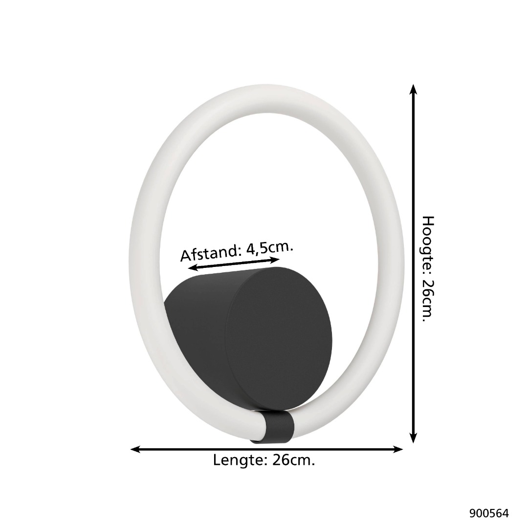 Een moderne wandlamp uit de collectie van Eglo. De lamp is gemaakt van staal en kunststof en heeft een zwarte kleur met wit. De lamp wordt inclusief LED lichtbron geleverd met een wattage van 11,5W. De lamp heeft een bijzondere vorm, waardoor het een mooie, unieke uitstraling geeft aan je huis. De lamp is een goed voorbeeld van een lamp die goed in de hal, de woonkamer of slaapkamer gebruikt kan worden.