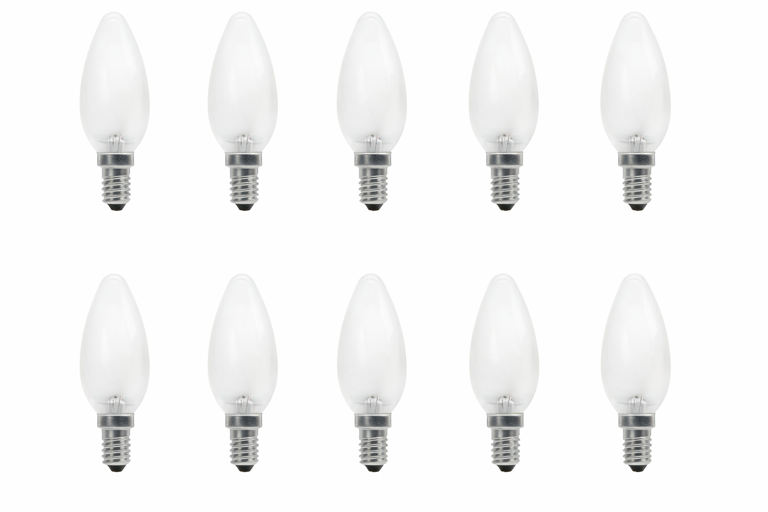 Een kaarsgloeilamp in een matte uitvoering. De lamp heeft een kleine E14 fitting en een vermogen van 40W. De lamp is direct op volledige lichtsterkte.