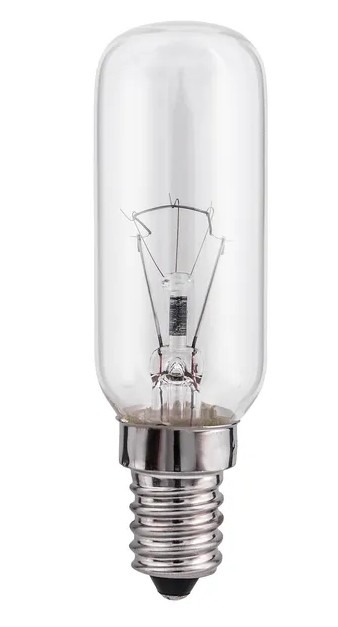 Een heldere gloeilamp in buisvorm. De lamp heeft een wattage van 40W en een E14 fitting. De hoogte van de lamp is 8,6 cm. De lamp is direct op volledige lichtsterkte.
