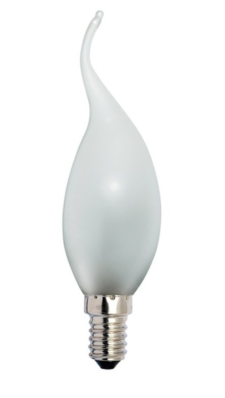 Een matte gloeilamp in tipkaars vorm van 25W met een E14 fitting. De gloeilampen zijn direct op volledige lichtsterkte. De gloeilamp geeft warm wit licht af.